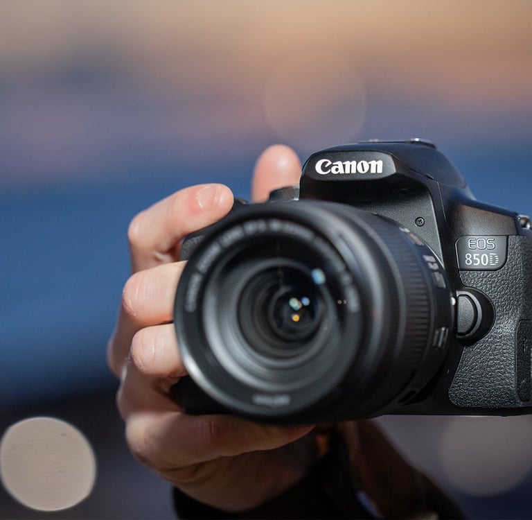 La Canon EOS 850D es una versátil cámara réflex digital con capacidades bien equilibradas para fotografía y video. Cuenta con un sensor CMOS APS-C de 24.1MP y un procesador de imagen DIGIC 8, lo que permite la grabación de imágenes fijas de alta resolución y videos UHD 4K, junto con un amplio rango de sensibilidad ISO de 100 a 25600 para adaptarse a diversas condiciones de iluminación.